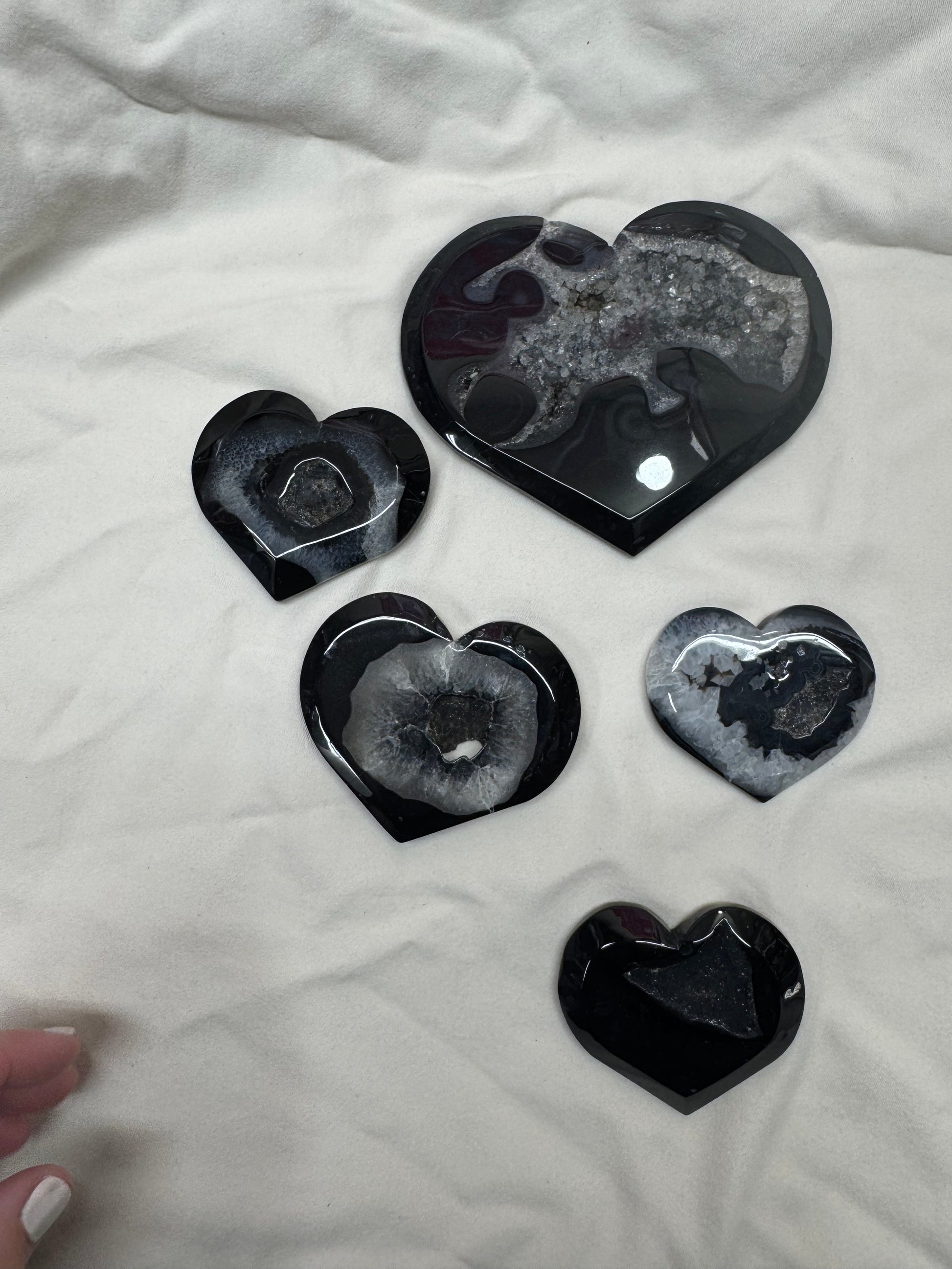 Natural Druzy Black Onyx Heart Crystal Healing -Small or Medium or Large