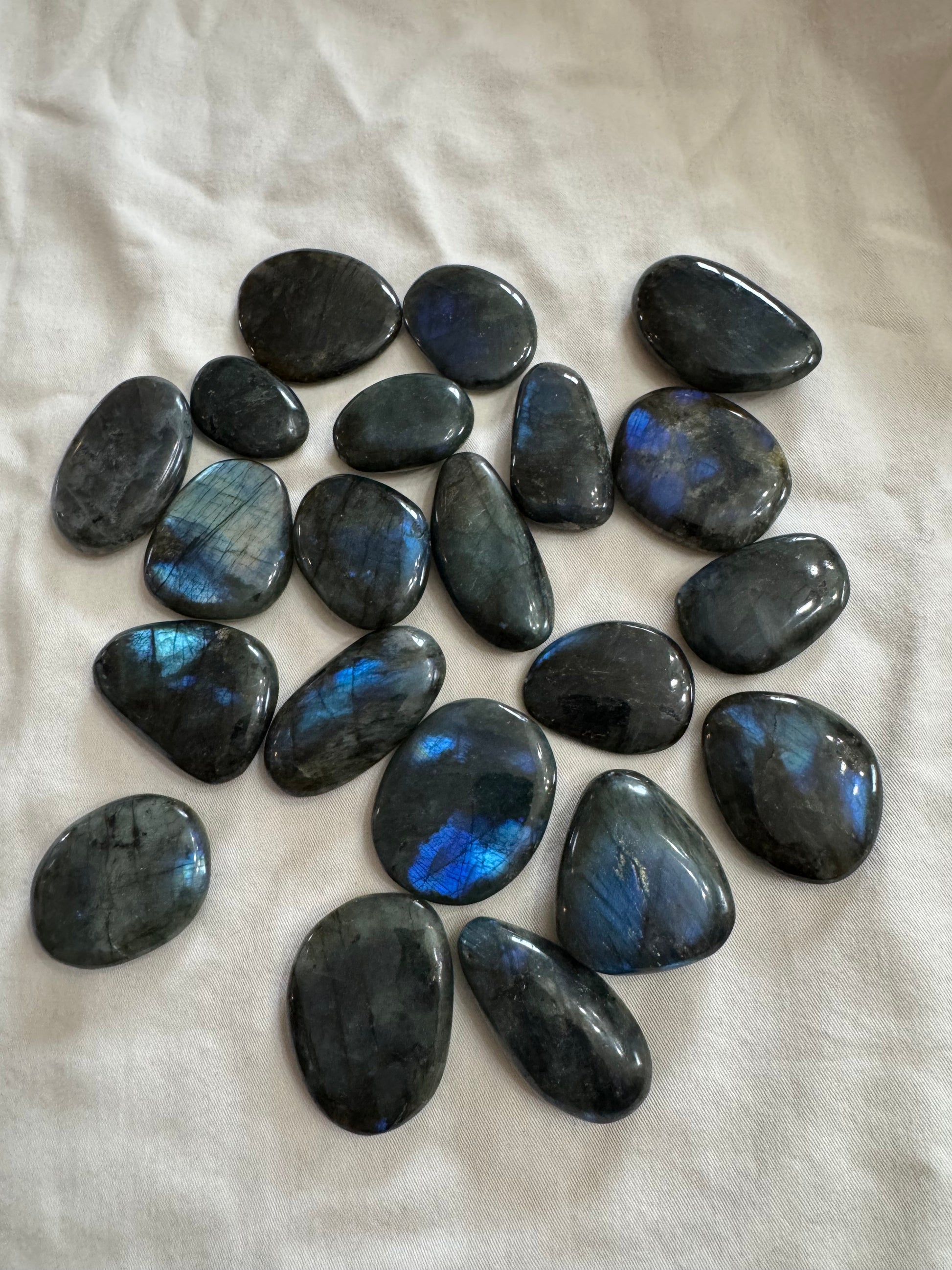 Blue Flash Labradorite Flat Pocket Palm Stone 1 Piece