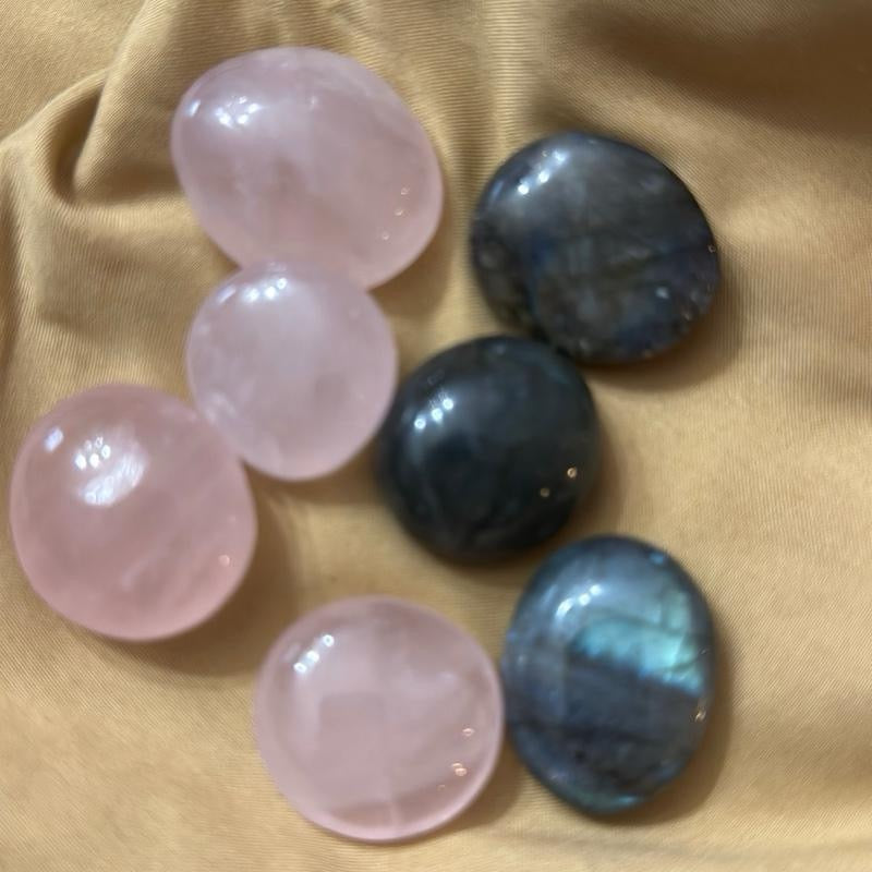 Rose Quartz or PURPLE Rose Quartz or Labradorote or combo rose quartz and labradorite pocket pebbles
