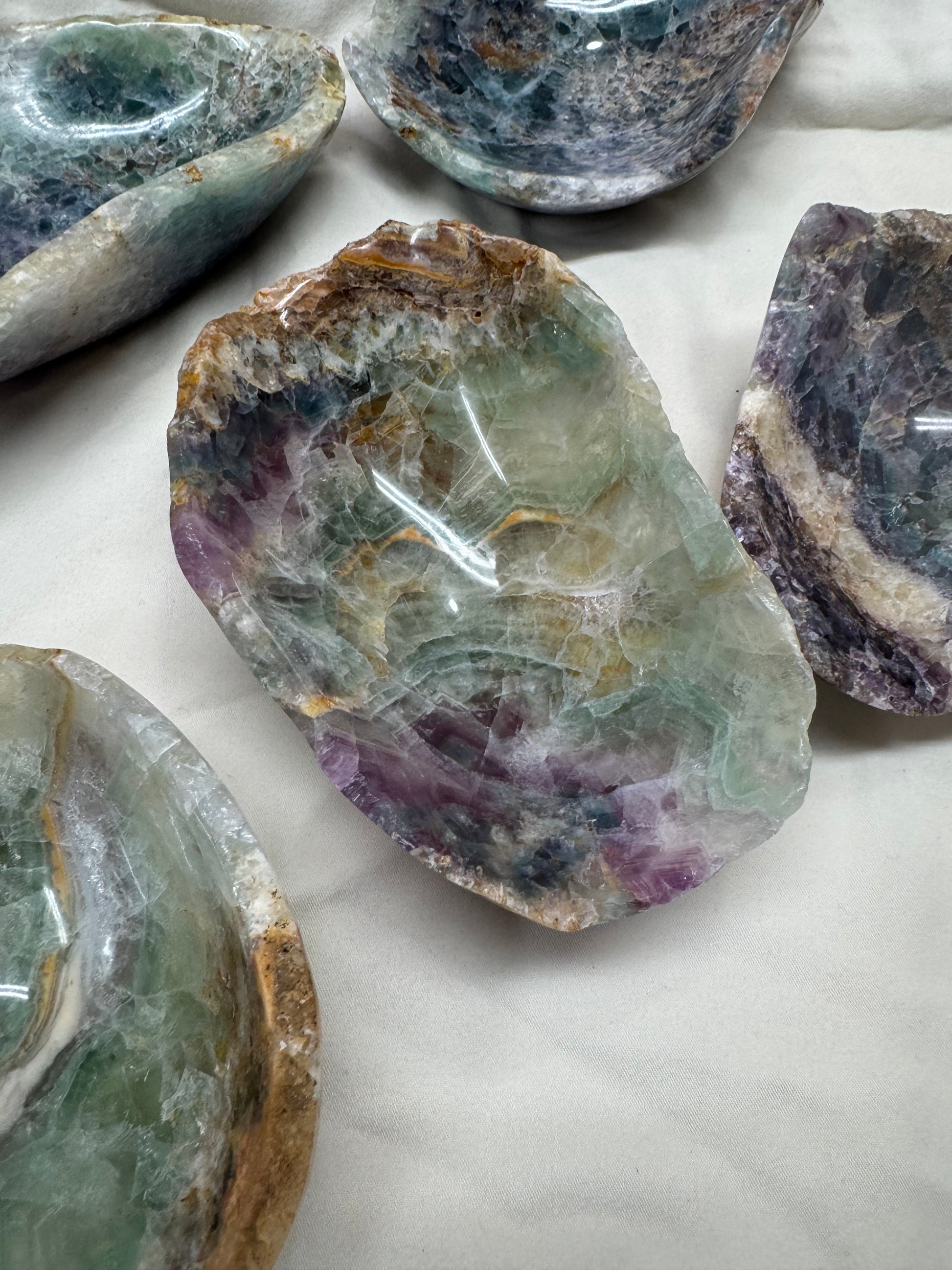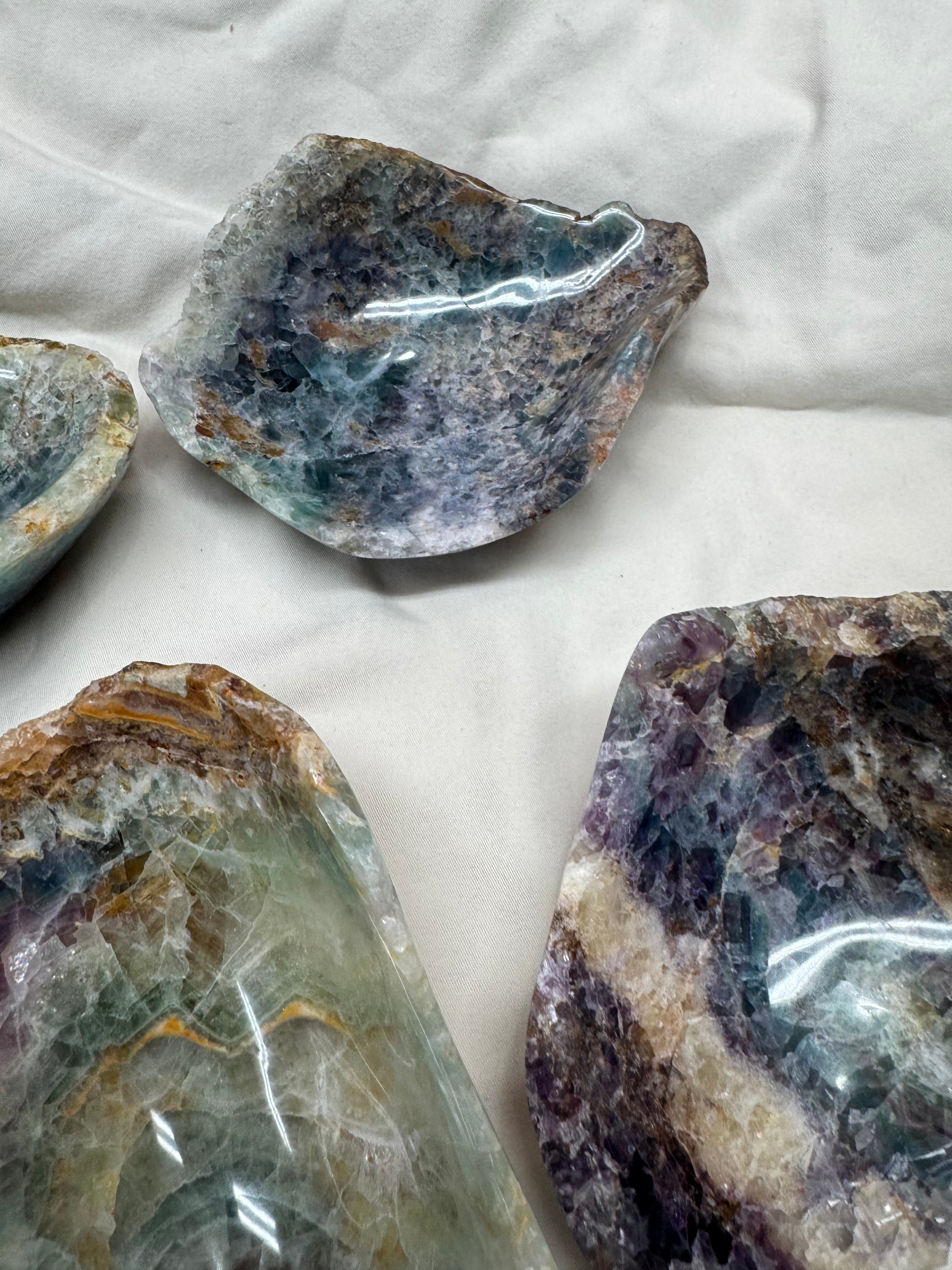A Fluorite Bowl brings clarity, balance, and a calm flow of energy to any space. Perfect for holding crystals, jewelry, or small treasures — each bowl is naturally unique.