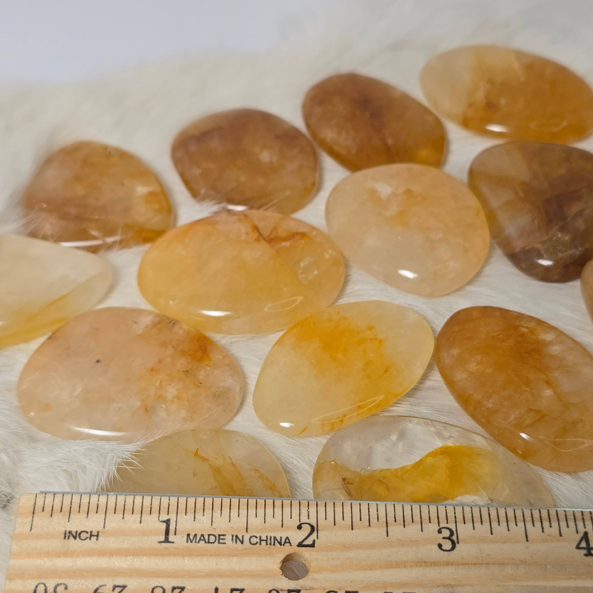 Golden Healer Flat Stones from Madagascar. Golden Healer Quartz is a stone of healing, amplification, and spiritual enlightenment. It is believed to radiate high vibrational energy, promoting deep emotional and physical healing while aligning the mind, body, and spirit. Often associated with the crown and solar plexus chakras, Golden Healer Quartz is valued for its ability to enhance clarity, dissolve blockages, and encourage personal transformation. This stone is known to facilitate a strong connection to higher realms, making it a powerful aid in meditation and spiritual growth.