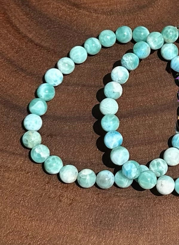 Natural Larimar Crystal 6mm 7.5” Bracelet